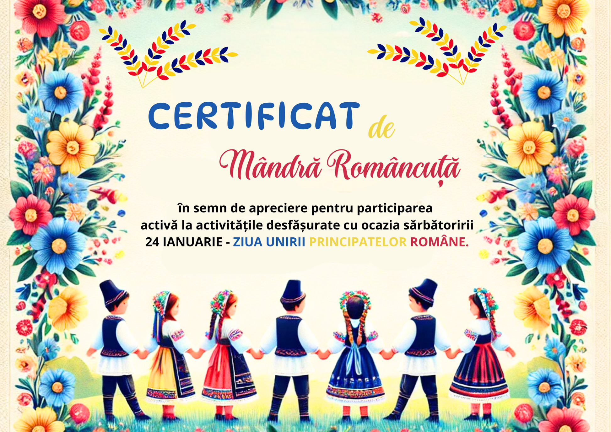 Răsplătește efortul și implicarea participanților la activitățile tematice dedicate Zilei Unirii Principatelor cu aceste diplome speciale. Oferă-le copiilor, elevilor sau colegilor o amintire de neuitat!