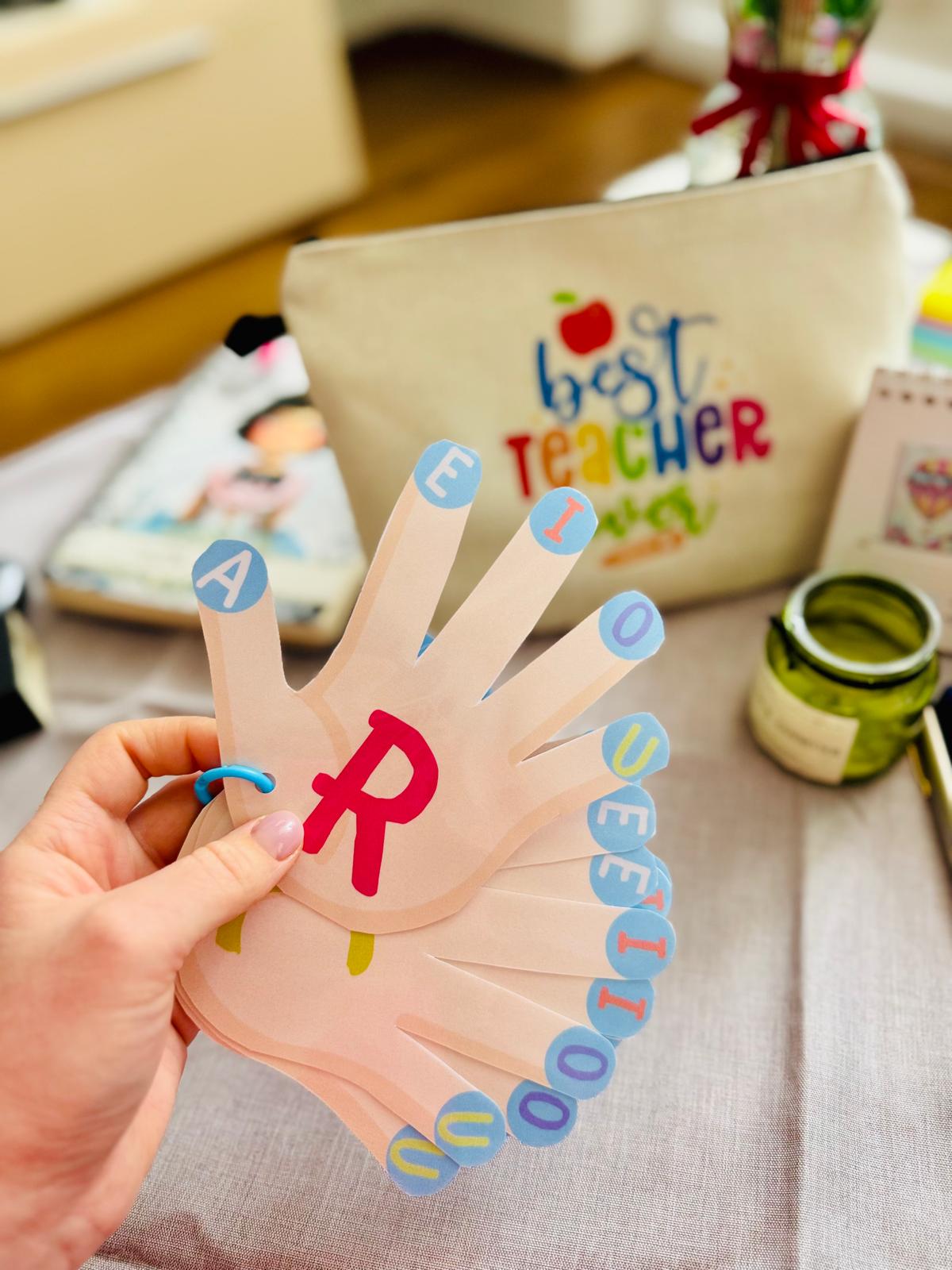 Un material vizual jucăuș, cu pălmuțe colorate ce conțin combinații de sunete (consoană + vocală). Ideal pentru jocuri logopedice, decupat, sortat sau lipit!