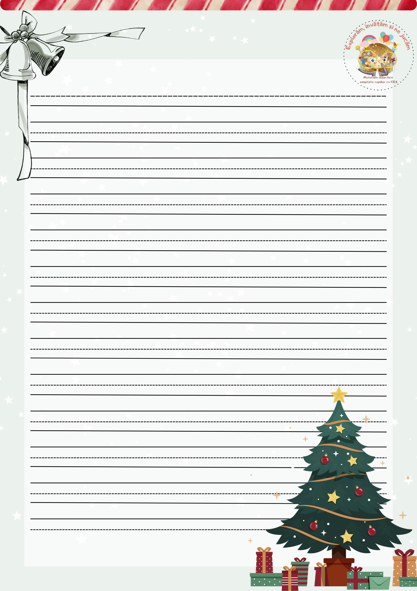 Descarcă gratuit paginile cu liniuță pentru tematica Crăciun, perfecte pentru activități de scriere și creativitate!