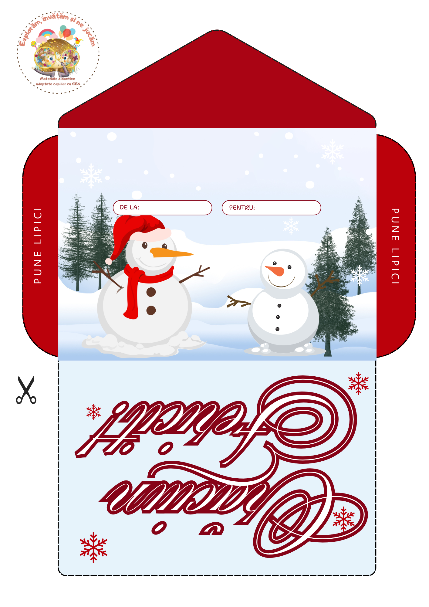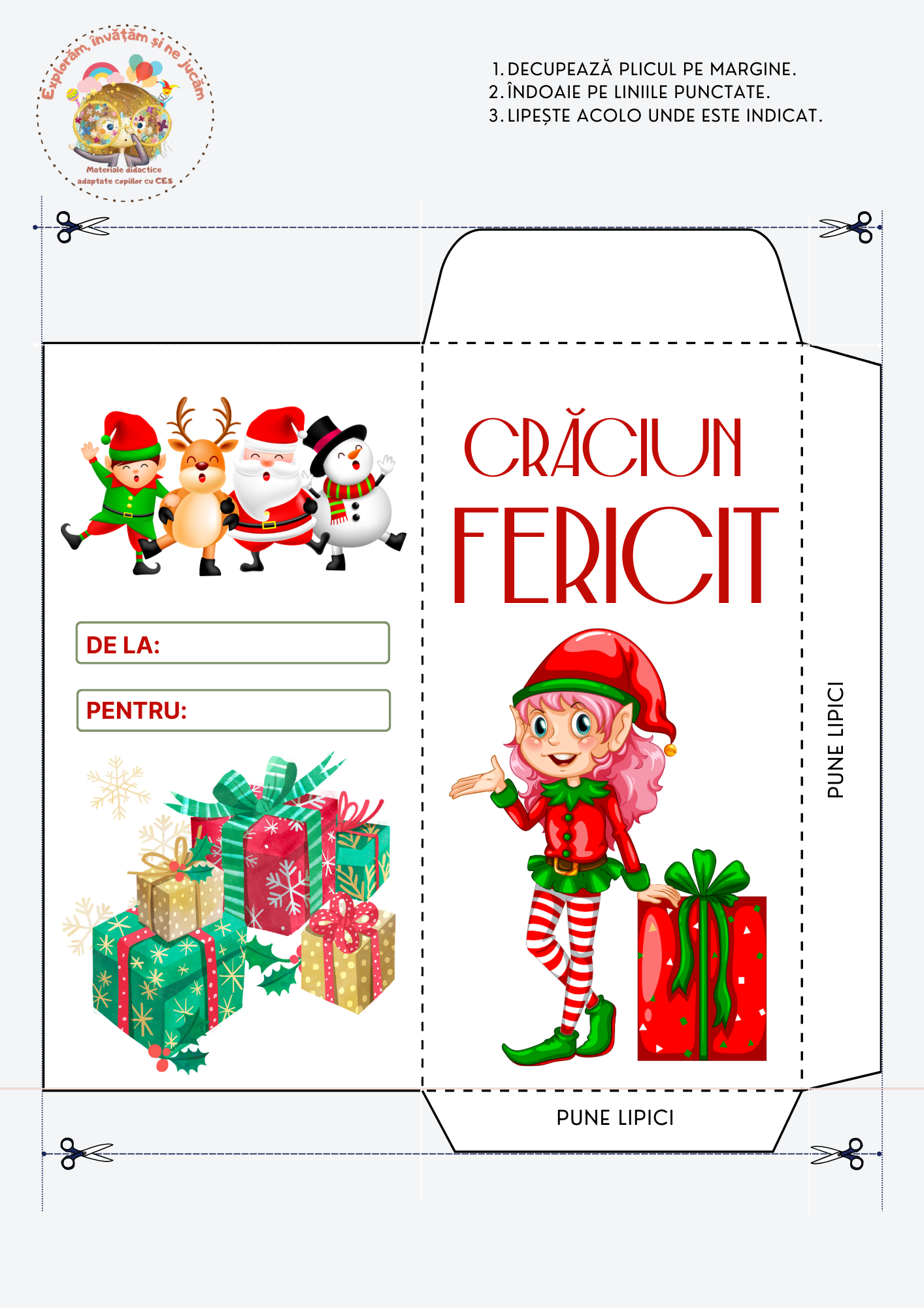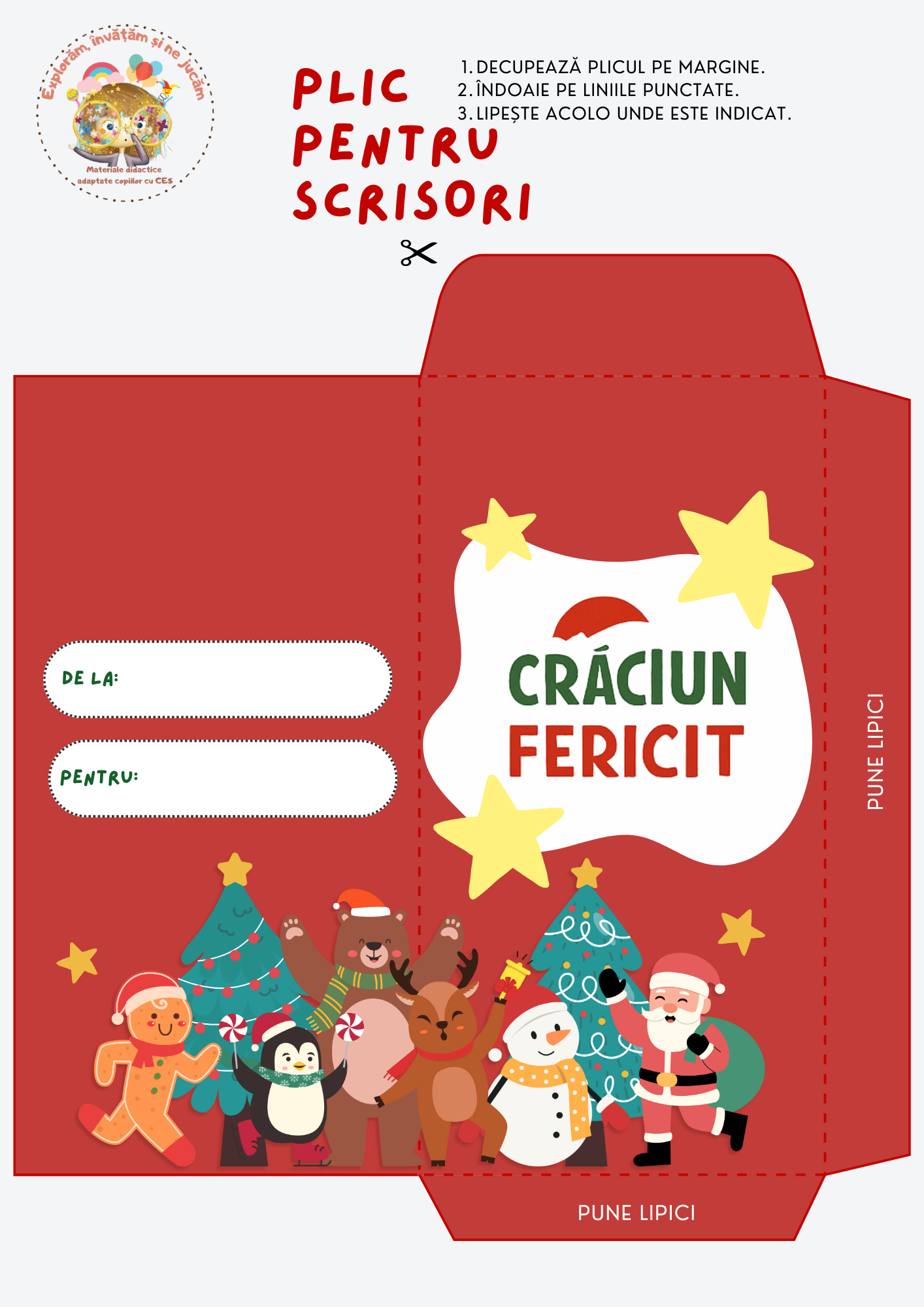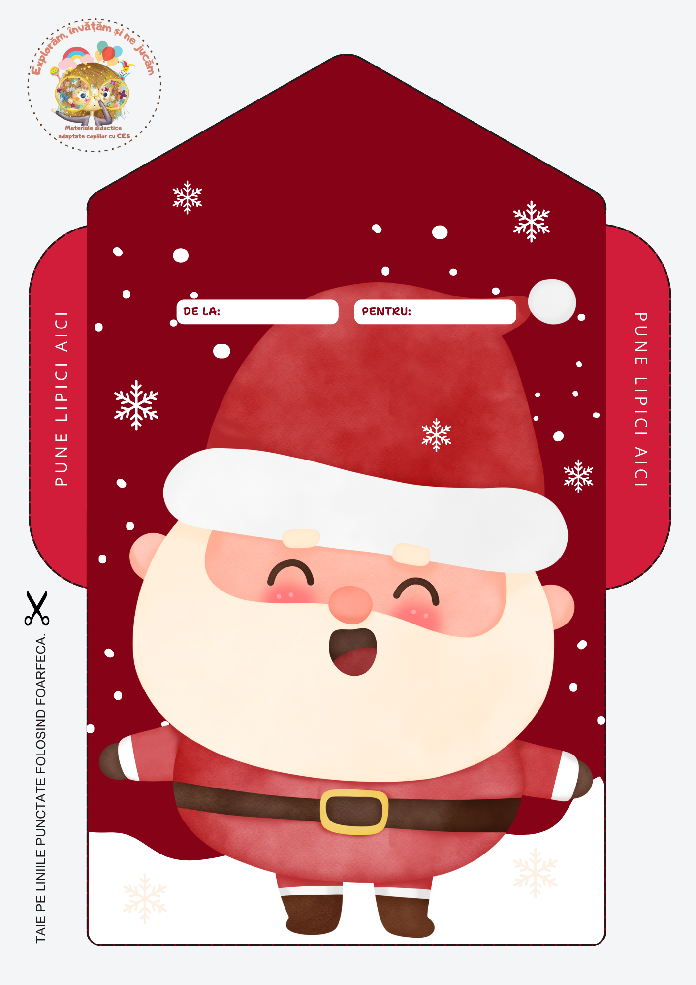☃️ Plicurile pot fi folosite pentru scrisori către Moș Crăciun, bilețele surpriză, activități la clasă sau ca suport pentru mici cadouri de iarnă.