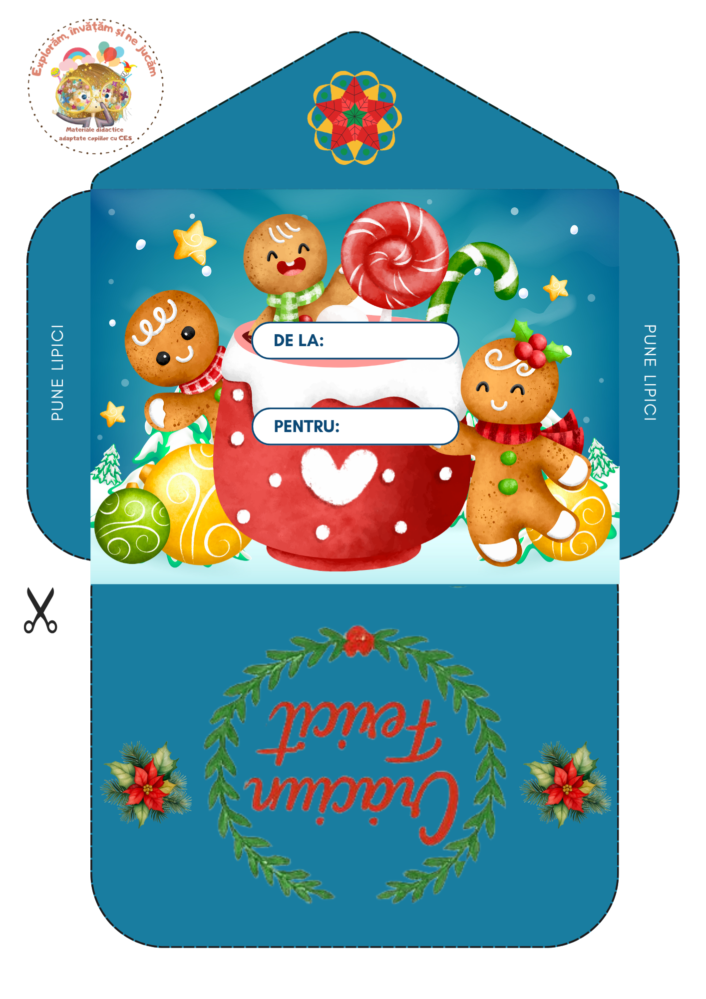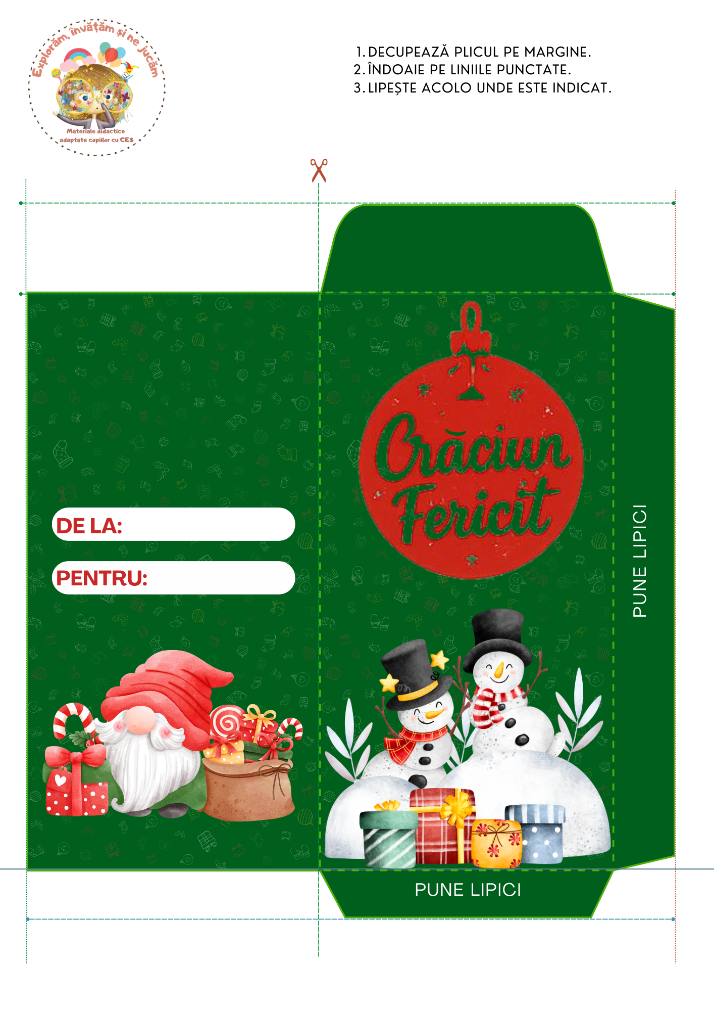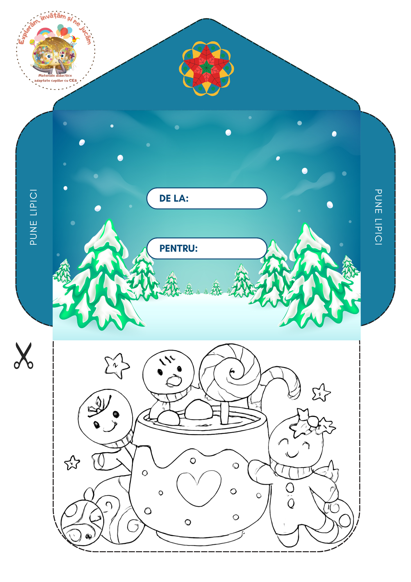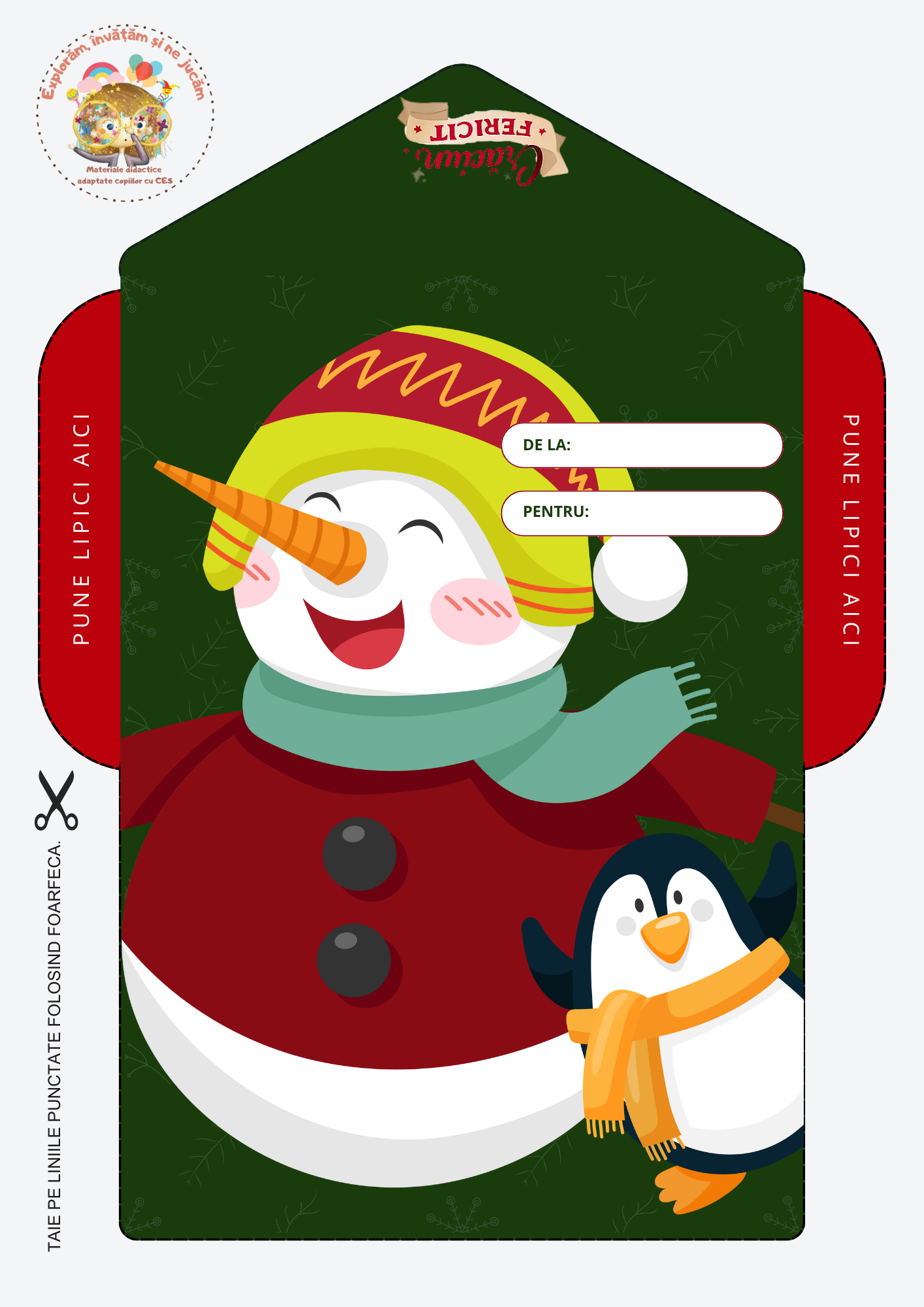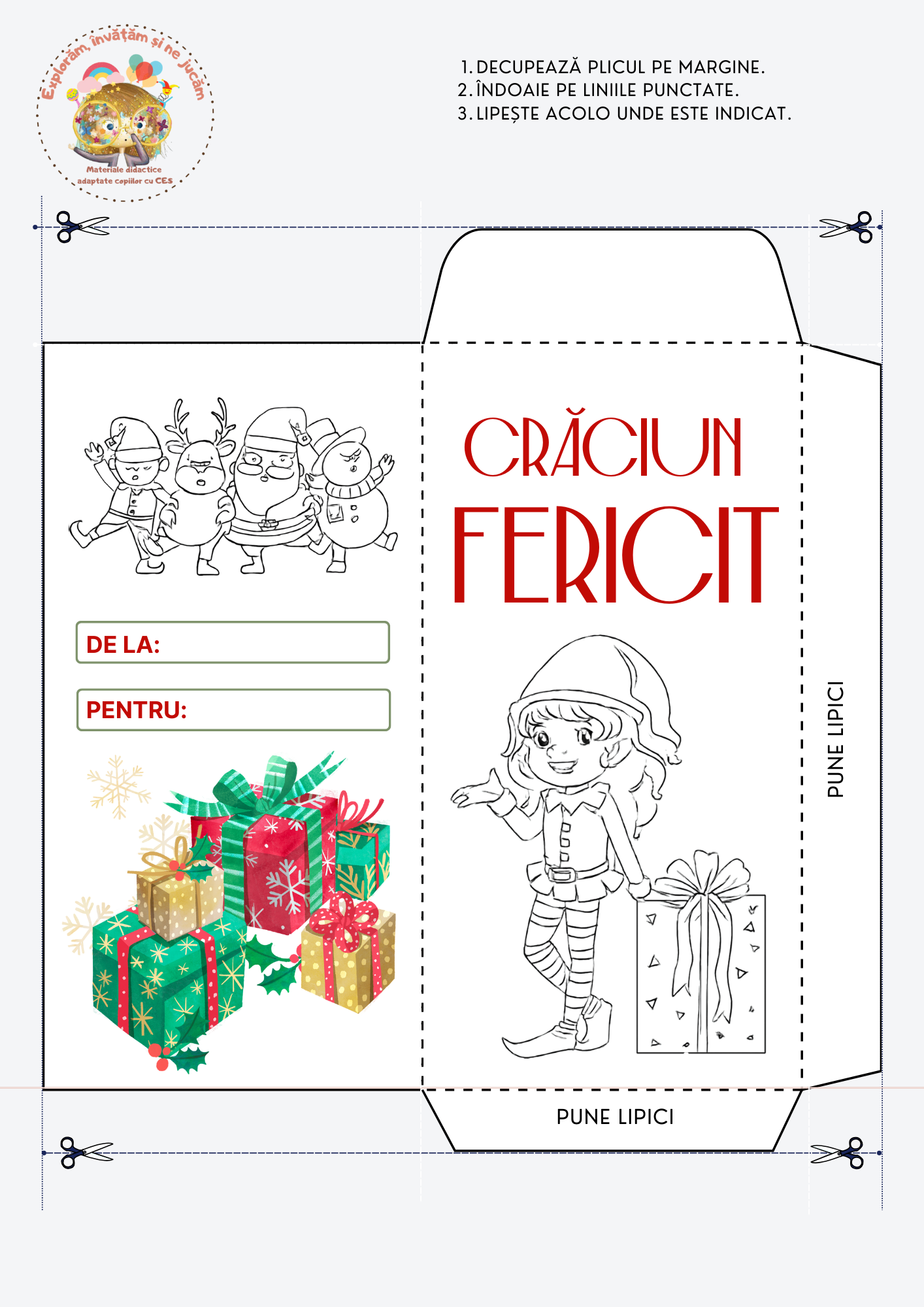 ☃️ Plicurile pot fi folosite pentru scrisori către Moș Crăciun, bilețele surpriză, activități la clasă sau ca suport pentru mici cadouri de iarnă.