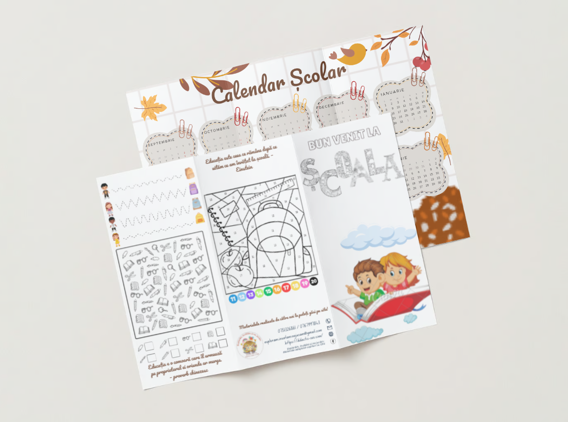 -broșură cu jocuri și calendarul școlar