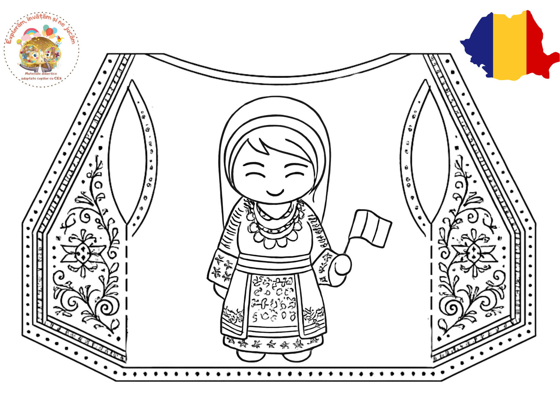Vestele traditionale de 1 Decembrie sunt perfecte pentru activitatile creative din perioada Zilei Nationale a Romaniei. Copiii pot colora, decupa si personaliza modelele inspirate din portul popular, transformandu-le in accesorii tematice pentru serbari sau activitati la clasa.