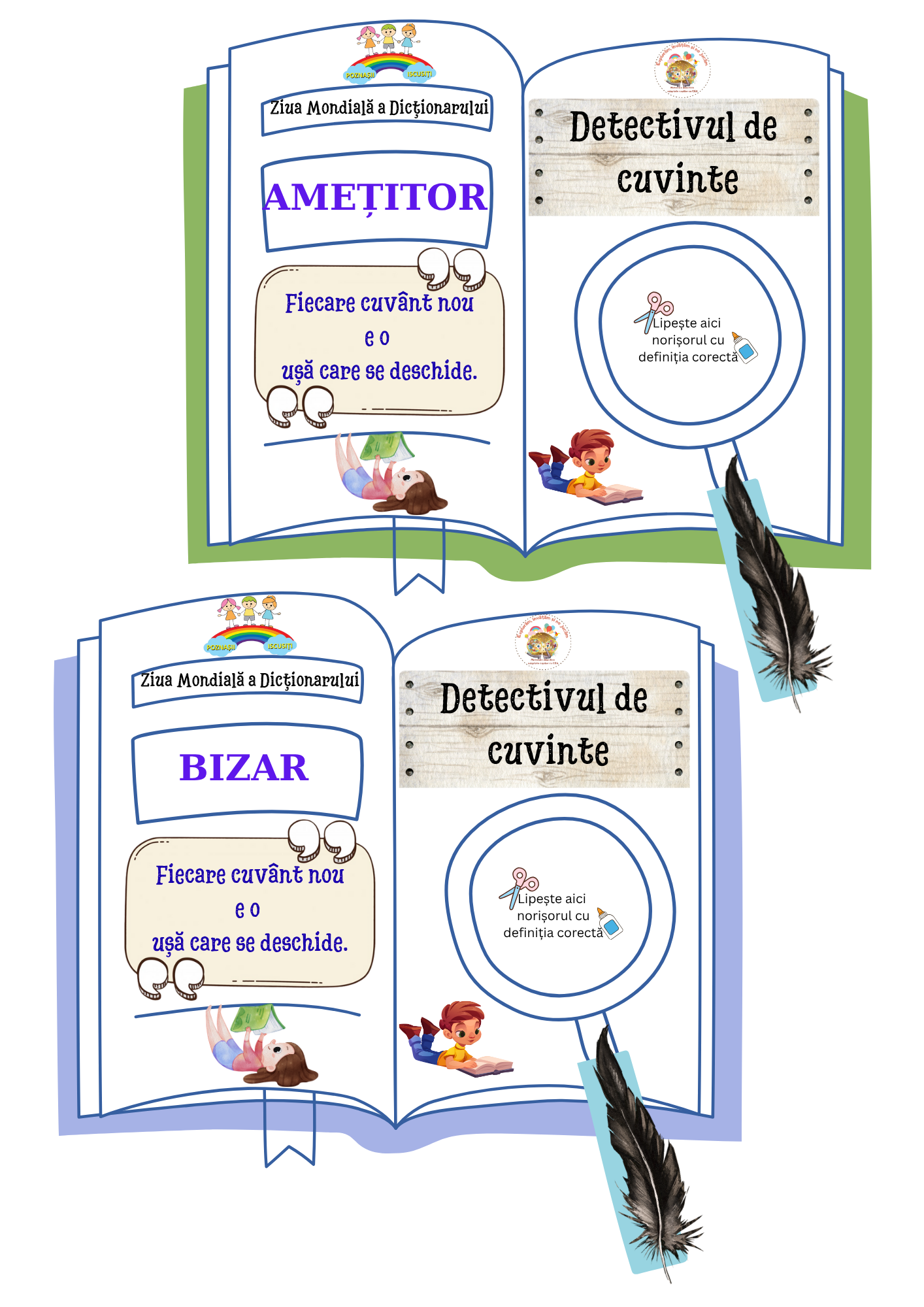 Activitatea antrenează dezvoltarea vocabularului: copilul descoperă sensuri, caută sinonime/antonime și folosește cuvântul în propoziții – cresc conștiința morfologică, precizia verbală și plăcerea lecturii.
